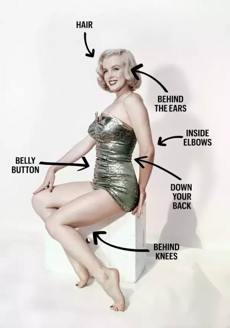 This is another hotspot to apply your perfume to. The pulse point here warms up the fragrance and makes your perfume more potent and also enhances its longevity. Note that when you apply your fragrance behind your two wrists, donβt rub it together. Rubbing it together breaks down the composition of the perfume thereby changing the scent of the perfume. Just sprits your two wrists individually and leave to dry of.