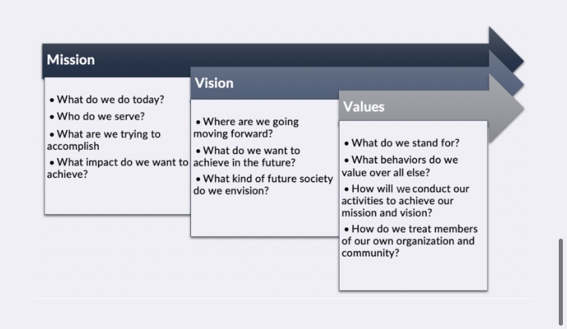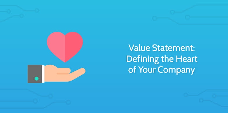 This includes few words or short phrases that describes the core values and ethics of an organization. It highlights how the organization will achieve its mission and vision. The value statement helps guide the people in the organization about the core principles and philosophical ideals of the establishment as well as informing external bodies about what is important to that company.