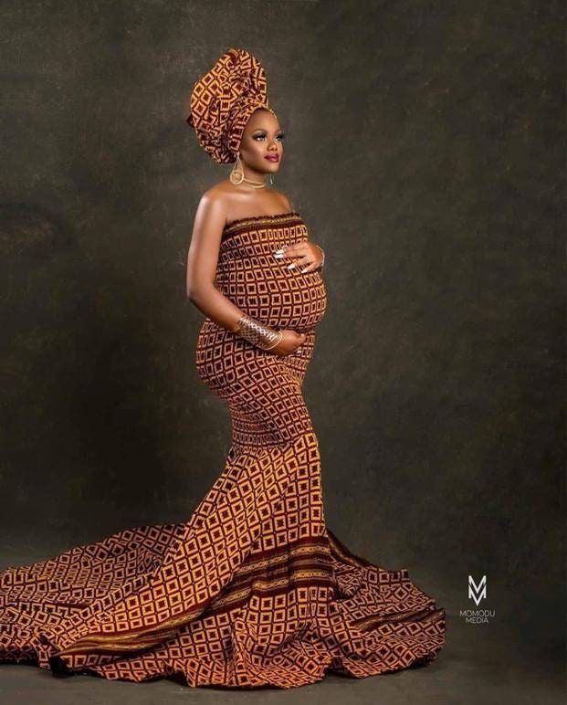 This is a three-layered gypsy dress. I made this for my pregnant client and her baby girl. Gypsy dresses are a good idea as they are incredibly free and you can mix different fabric colours and patterns. Dresses @planetzaiyEasy slip dress can be dressed up with heels or down with sandals. This short off-shoulder dress is one I really love. You can still be sexy and preggo you know ๐This Ankara midi dress is chic but would provide extreme comfort. I am particularly in love with the fabric mix. Lace collars, organza puff sleeves and a straight trimming in the middle. The side pockets also give it a final wow touch. This dress is really beautiful. Here we have a maxi A-line crepe dress. Patches of flowers from an Ankara fabric are then cut out and placed on it, then embellished with Swarovski stones. It’s really a simple yet glam dress. This is a really classy white pregnancy dress. Dresses with pleats at the waist whether long or short make excellent maternity dresses. This is a glam dress suitable for a pregnancy photoshoot. I love the off-shoulder surplice neckline, puffy bishop sleeves and the mermaid train. Such a beautiful dress. For the bold African woman, this Ankara maternity dress for a photoshoot is an excellent idea!