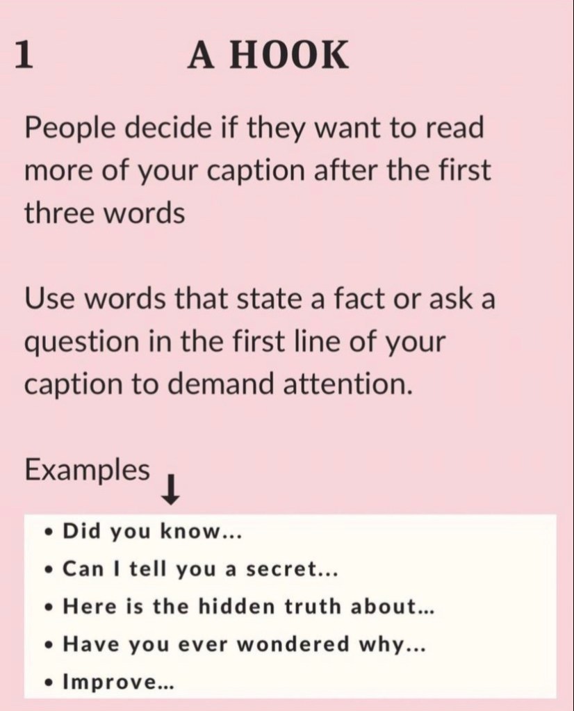 A good caption has a three tier structure, luring, informing and persuading audiences to act. If you want your caption to convert into customers, categorize it into the following three phases.