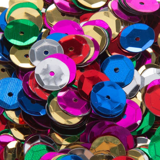 6. Sequins: These are small disk-shaped beads made of plastic. They are usually flat but also come in a slightly cup-shaped structure as in the image. Sequins are great to add a little sparkle without adding weight to the fabric. It can be combined along with beads for a visual treat.